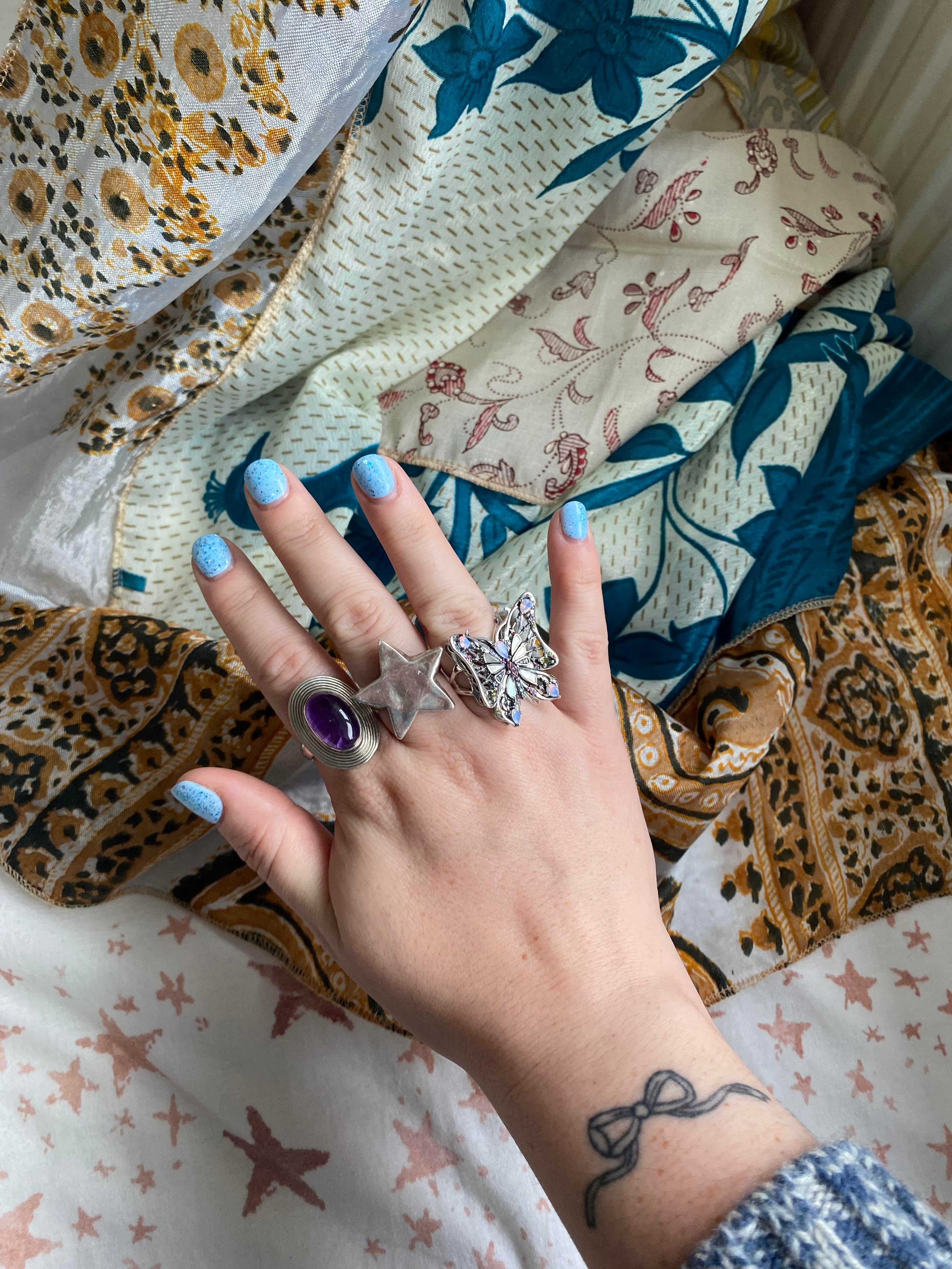 “And the fairy vibes just keep coming! Though not a classic design (I don’t really do ‘classic’ style) but it definitely is an investment piece, and one that I’m already wearing everyday along with my other favourite knuckle dusters. As you can see I love all things silver, whimsical and a little boho.” — Esther Newman, Affiliate Writer & Content Producer