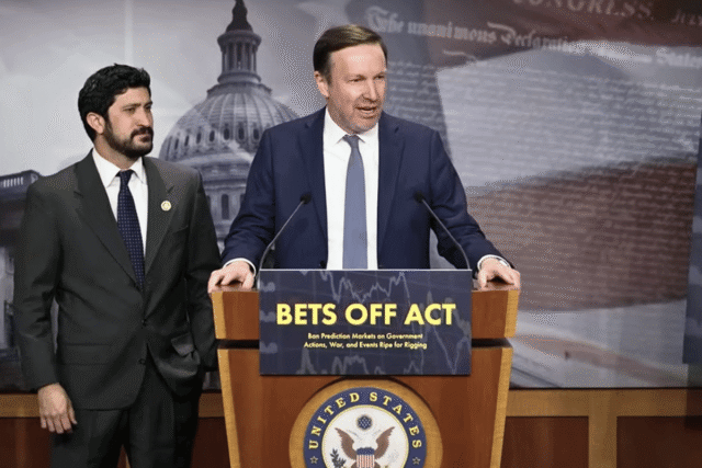 Sen. Chris Murphy and Rep. Greg Casar introduced what they call the Banning Event Trading on Sensitive Operations and Federal Functions Act, or the BETS OFF Act. Their proposal would block betting platforms from offering contracts tied to government actions or situations where insiders might already know, or directly influence the outcome.