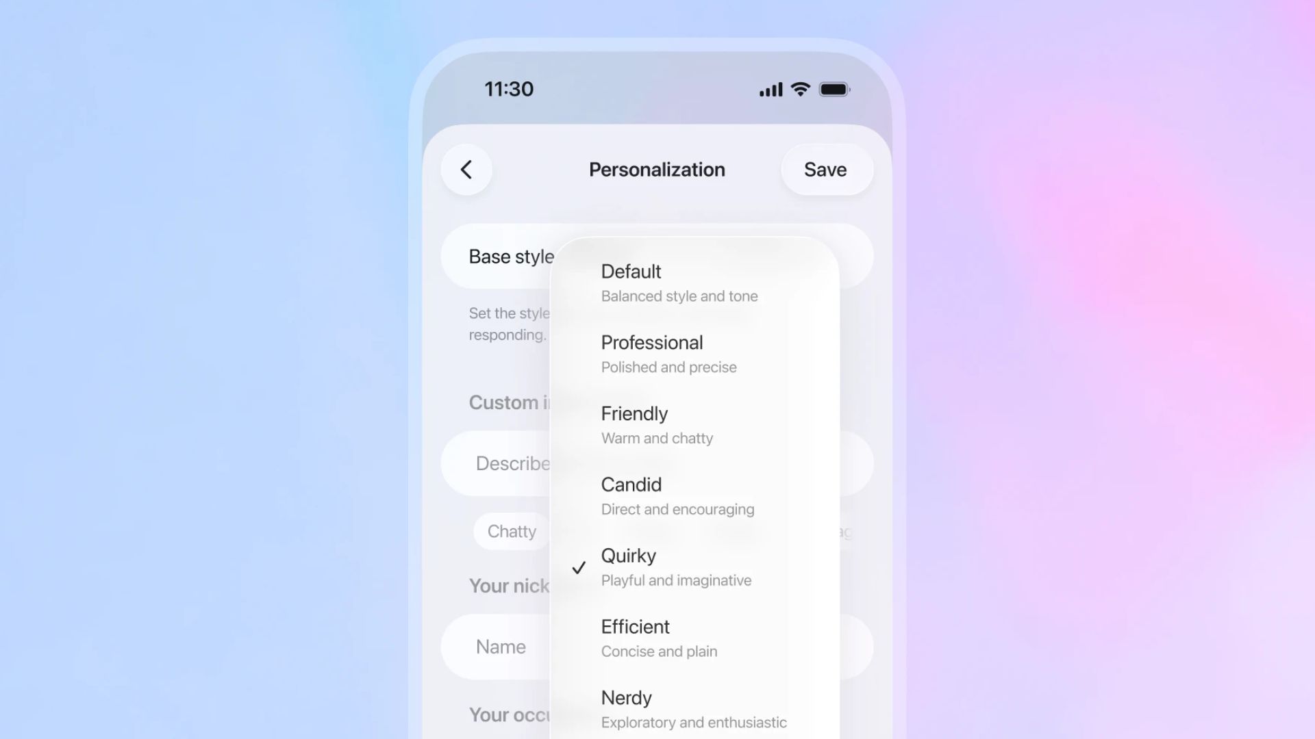 That gives you quick control over how formal or playful the conversation feels without having to prompt for it every time.