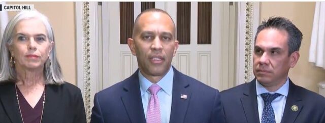 House Democratic Leader Hakeem Jeffries, Democratic Whip Katherine Clark, and Democratic Caucus Chair Pete Aguilar said in a joint statement: