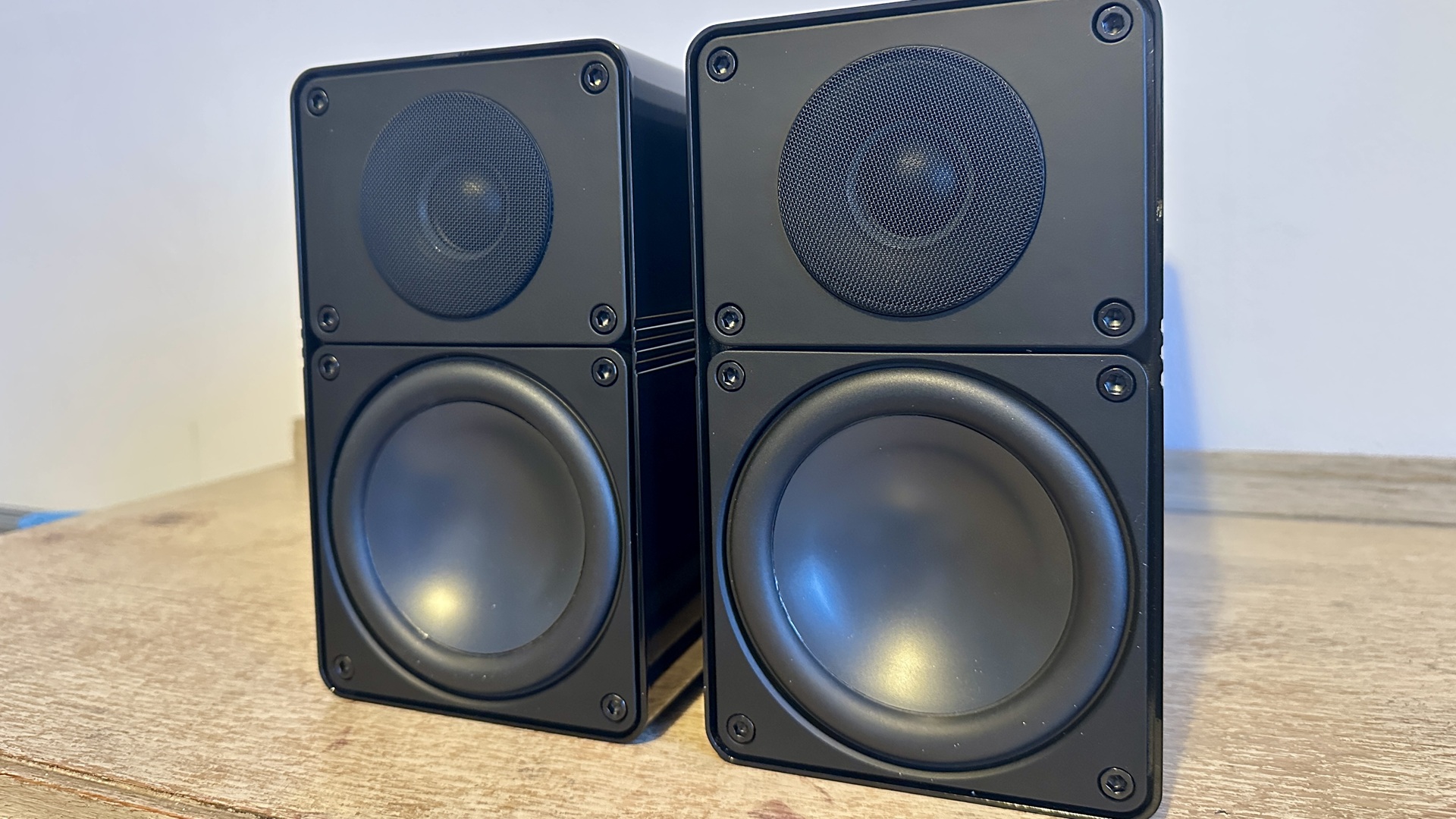 Up front, the slim cabinet walls mean the face of the speaker is basically all driver. There’s a 25mm fabric dome tweeter in the upper section, above a 115mm mid/bass driver. This driver is aluminium too, in a ‘sandwich’ arrangement and sitting ahead of an optimised magnet system.