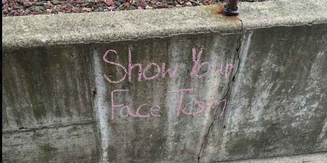 Keep reading below to see the act of vandalism that was perpetuated on Barrett’s office.