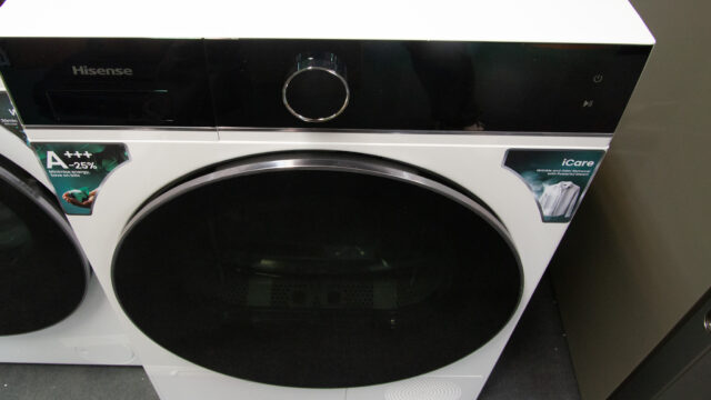 Although part of the Series 5i range, the Hisense DH5I104BWAB isn’t a KitchenFit model that’s only as deep as a kitchen counter, unlike the washing machine, the Hisense WFI1045BWQ. That’s arguably less important here: a tumble dryer doesn’t have any pipes at the rear, so it can sit almost flush with a wall, so it doesn’t stick out too far.