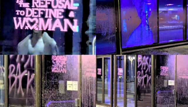 In following a new trend, Trans activists vandalized the venue of Europe’s largest feminist conference, taking place in Brighton, in the UK.