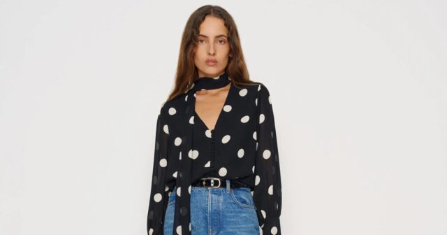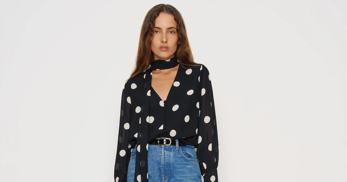 The Mads Oversized Top brings major 70s energy with its polka dot print and built-in scarf. It’s flirty and dramatic, but still super wearable with jeans or a sleek skirt.