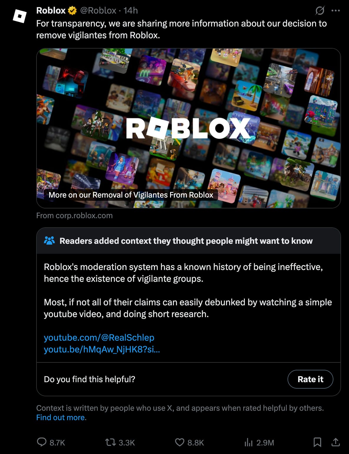 But the backlash has been fierce, with Roblox even receiving a community note on their X post stating they have a “known history of being ineffective” at keeping their game safe from child predators.