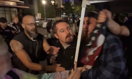 Even worse, a Trump fan named Tommy Allen, who was wearing a MAGA hat, came to Sortor’s defense and was ARRESTED by Portland police officers for allegedly ‘assaulting’ an Antifa militant. He claimed it was self-defense.