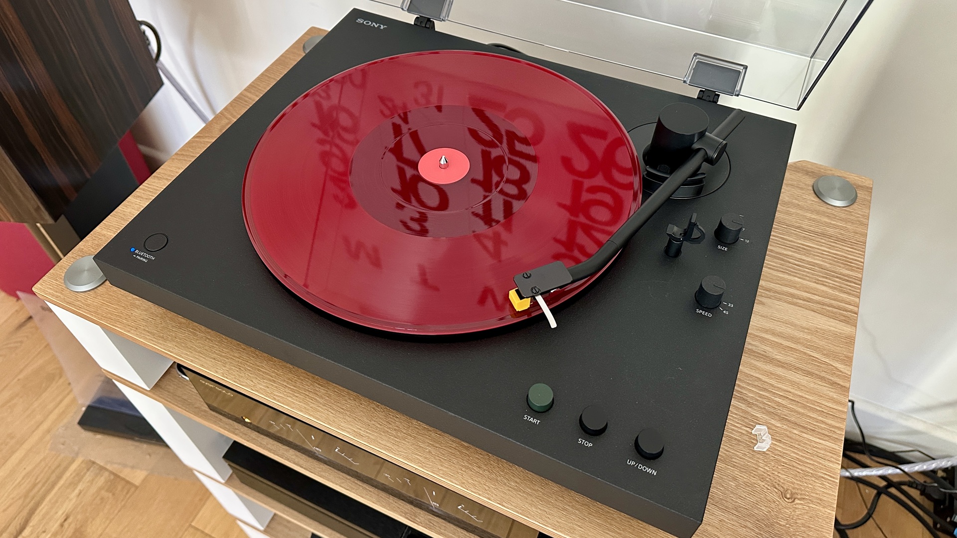 Switch to a wired connection, engage the integrated phono stage and set gain to ‘mid’, and the Sony seems to double down on its sonic characteristics, for both good and bad. It remains a quite forceful and upfront listen, but its low-frequency preoccupation becomes a little more pronounced and its relative lack of high-frequency substance becomes a little more apparent.