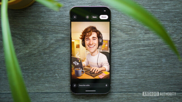 Mine turned out … fine. The photo I uploaded is of me in Rome from a vacation last year, so the Colosseum in the background is a good touch. ChatGPT also did a fine job retaining the style of my sweater, glasses, and hair. But what’s going on with the backwards phone I’m holding? Or the double-sided pencil? Or the weird growth on my coffee cup? I guess we’ll chalk those up to “artistic” choices.