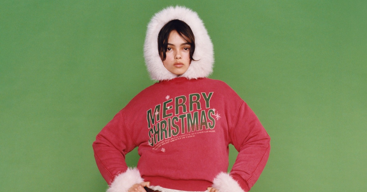 Think fuzzy trims, mismatched textures, and references that hit straight to the heart. There are also Home Alone, and The Grinch pieces, too. One standout look pairs a bold red “Merry Christmas” sweatshirt with fluffy white trim and a mini sherpa skirt.
